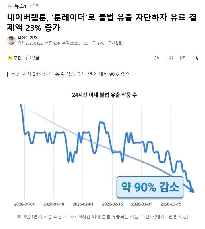 네이버가 주도적으로 추진한 불법 복제 방지 기술이 결국 효과를 본 것 같다.
