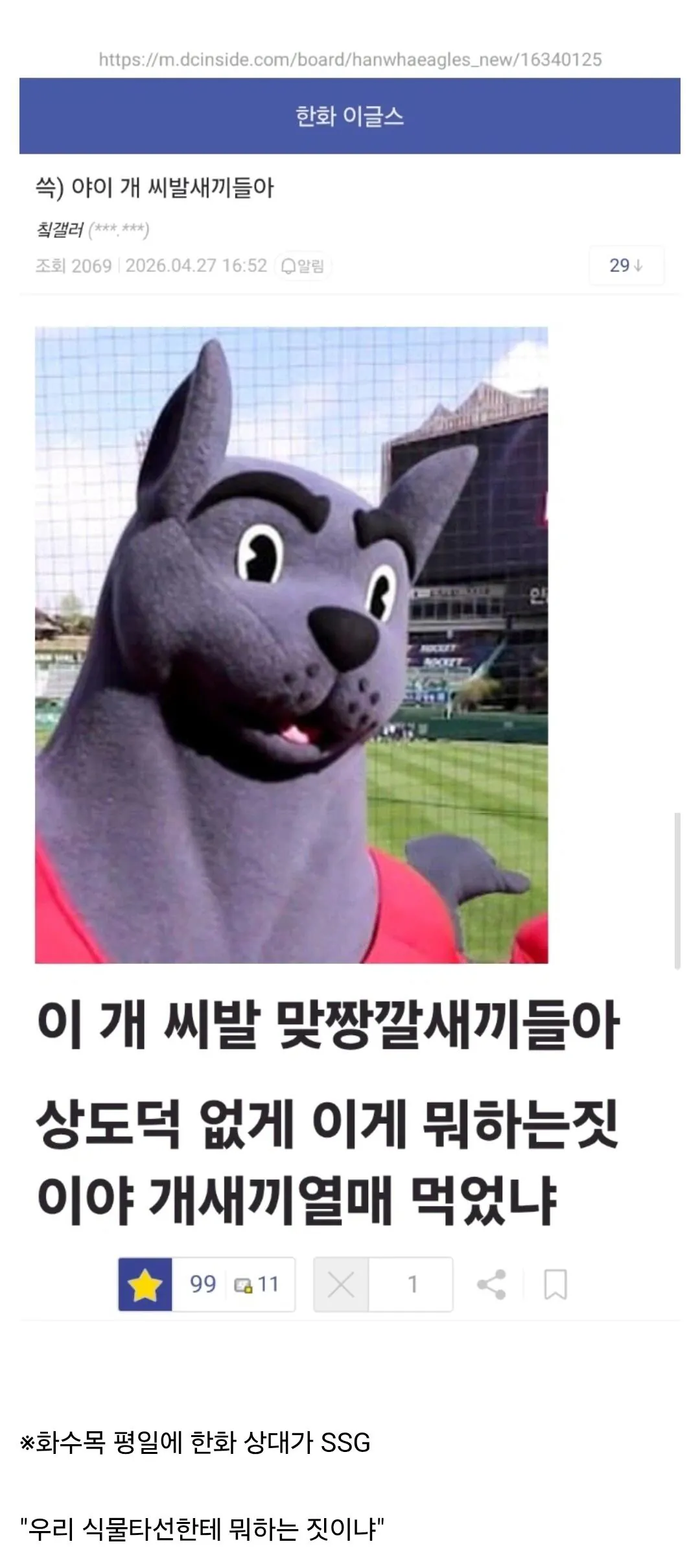 한화, 김서현 2군 내려보내자 SSG팬 폭발