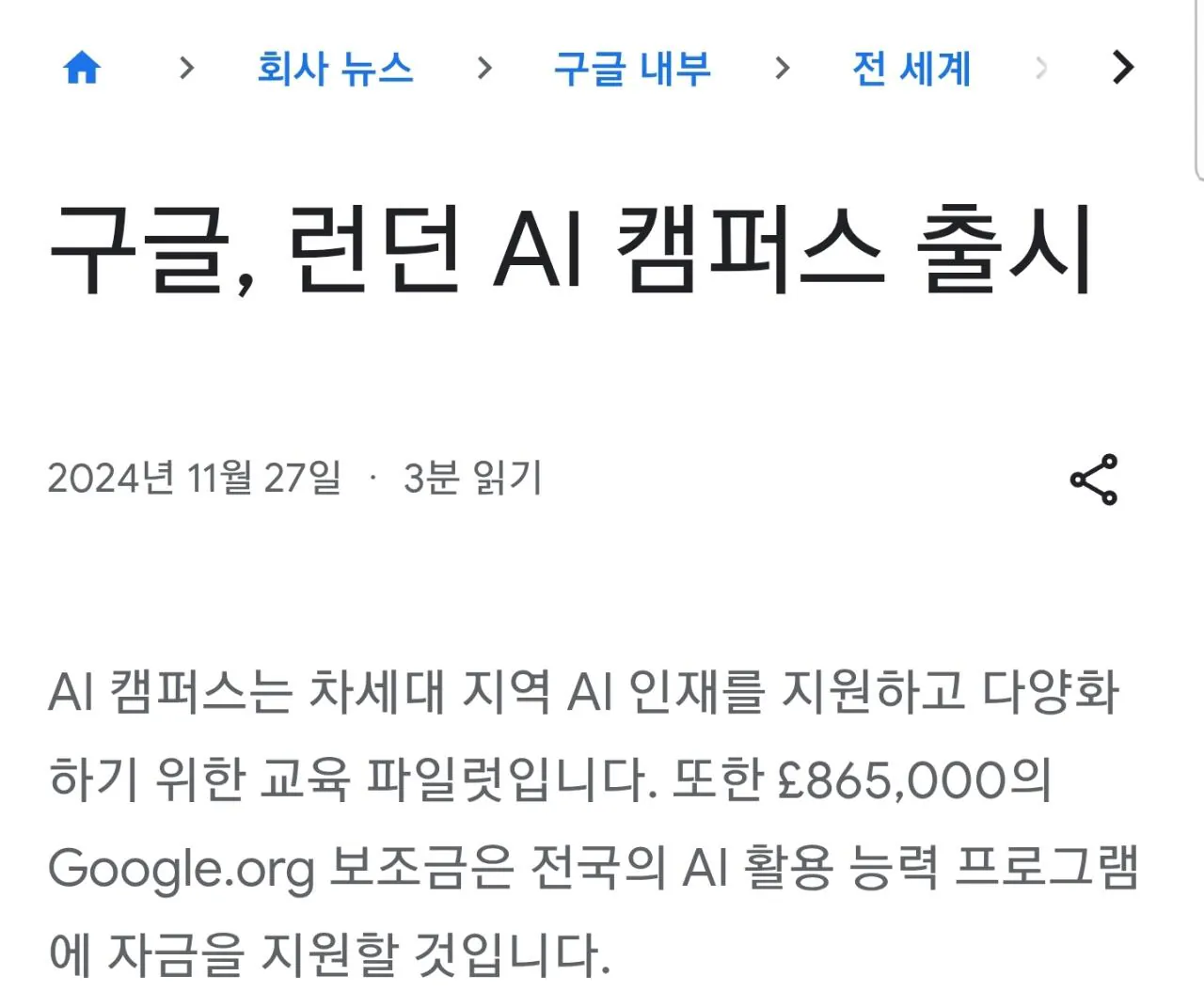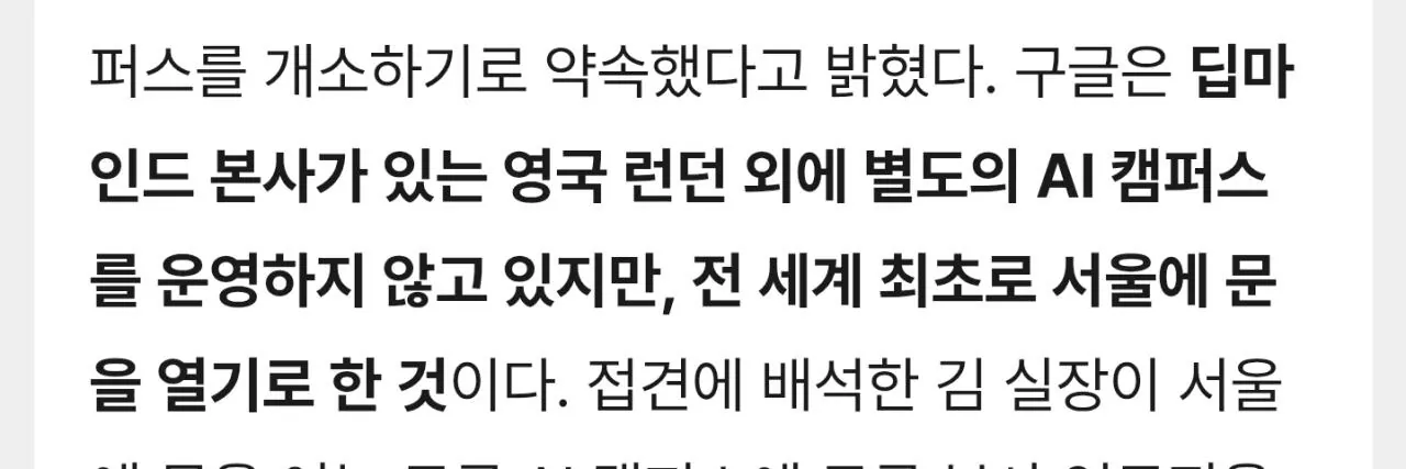런던의 딥마인드 본사에서 처음 AI 캠퍼스를 개설한 후이제 한국 서울을 본사를 제외한 첫 번째 글로벌 AI 캠퍼스 위치로 정했다고