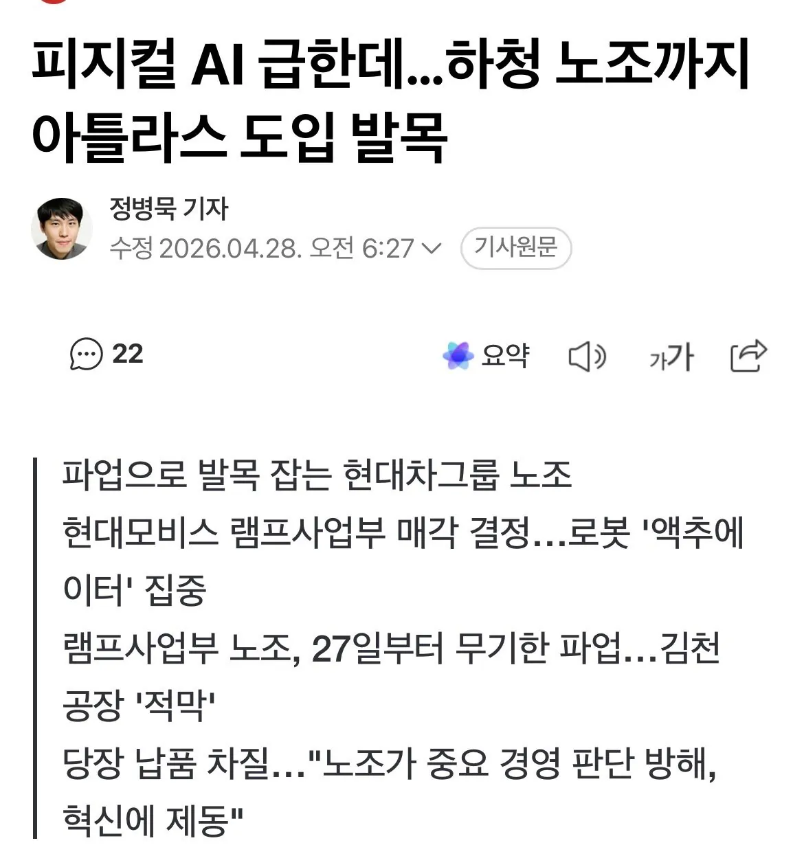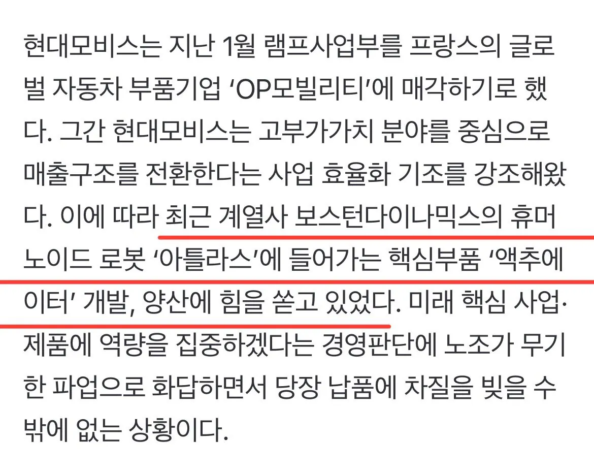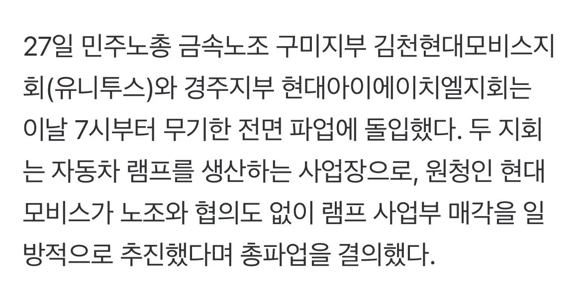 램프사업부를 매각한 뒤 AI 로봇 사업으로 경영 방향을 선회하려고 했대그런데 근로자들의 의사를 제대로 묻지 않은 채 일방적으로 진행되고 있다는 이유로 파업이 계속되고 있는 상황