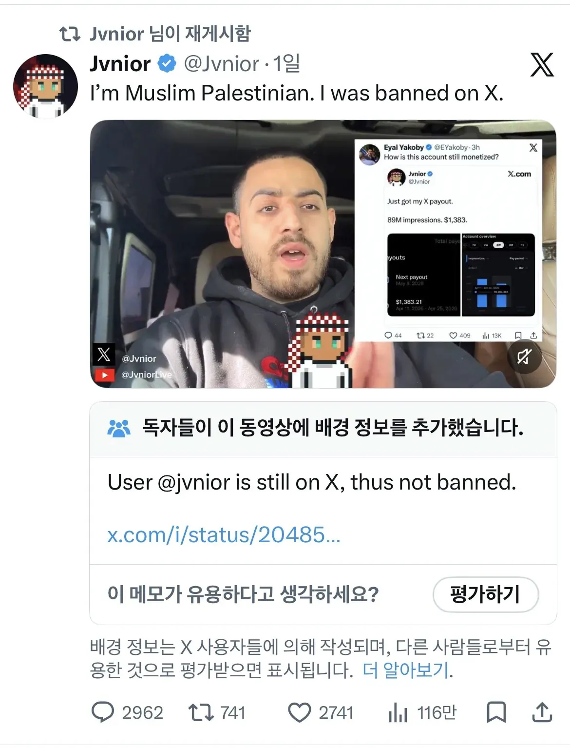 포텐 같은 커뮤니티에서도 자주 보이던 꽤 알려진 계정이었는데거짓 정보하고 음모론만 자꾸 올려서 조회수를 많이 벌었다더라근데 신고가 계속 들어오다 보니 결국 수익창출 기능이 정지돼버렸다는 얘기네