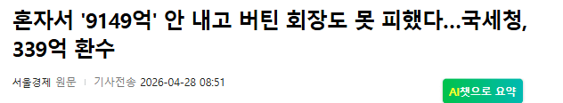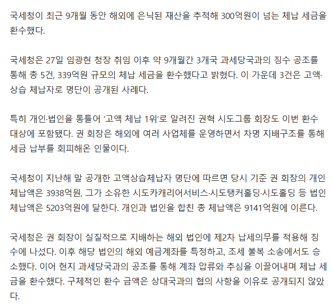 혼자서 '9149억' 안 내고 버틴 회장도 못 피했다…국세청, 339억 환수