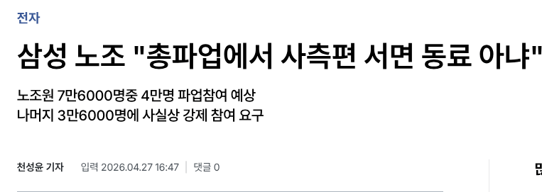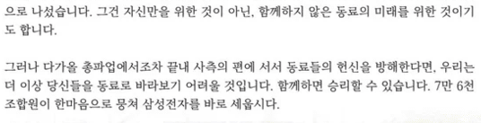 삼성 총파업 중 회사 편 드는 직원들, 노조가 동료 안 친다고 못 박음
