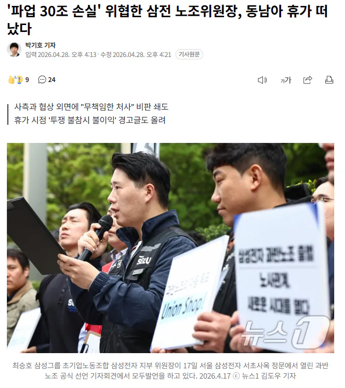 30조 손실 협박하더니 노조위원장은 휴가 중