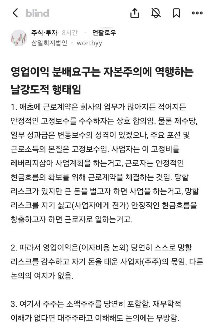 회계사가 꼬집는 이익분배 요구의 자본주의 모순