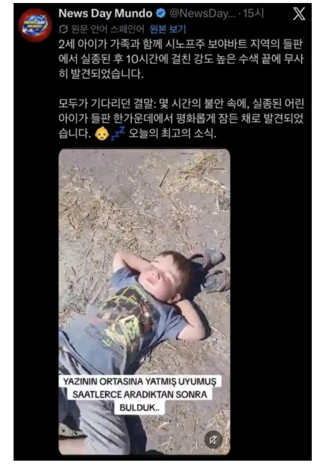2살 아기 10시간 종적 끊겼다가 발견됐네