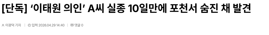 이태원 참사 당시 의인으로 주목받았던 A씨가 10일간 행방불명 상태였다가 경기도 포천 지역에서 발견되었다고 한다. 구체적인 상황에 대한 추가 소식이 나오고 있는 상황이다.