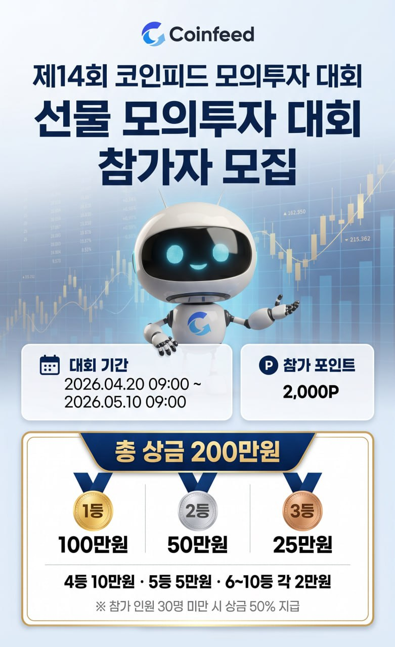 제14회 코인피드 선물 모의투자 대회 참가자 모집(총 상금 200만원)